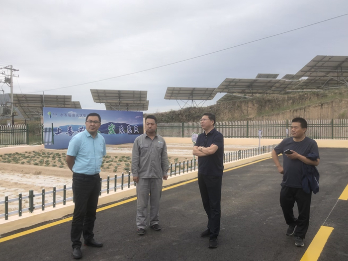 8月11日,甘肅省臨洮縣縣委常委、副縣長(cháng)劉鵬,臨洮縣商務(wù)局局長(cháng)劉學(xué)林一行到訪(fǎng)水發(fā)能源臨洮25MW光伏電站,進(jìn)行現場(chǎng)檢查及調研,水發(fā)能源集團黨委委員、副總經(jīng)理周廣彥現場(chǎng)陪同。